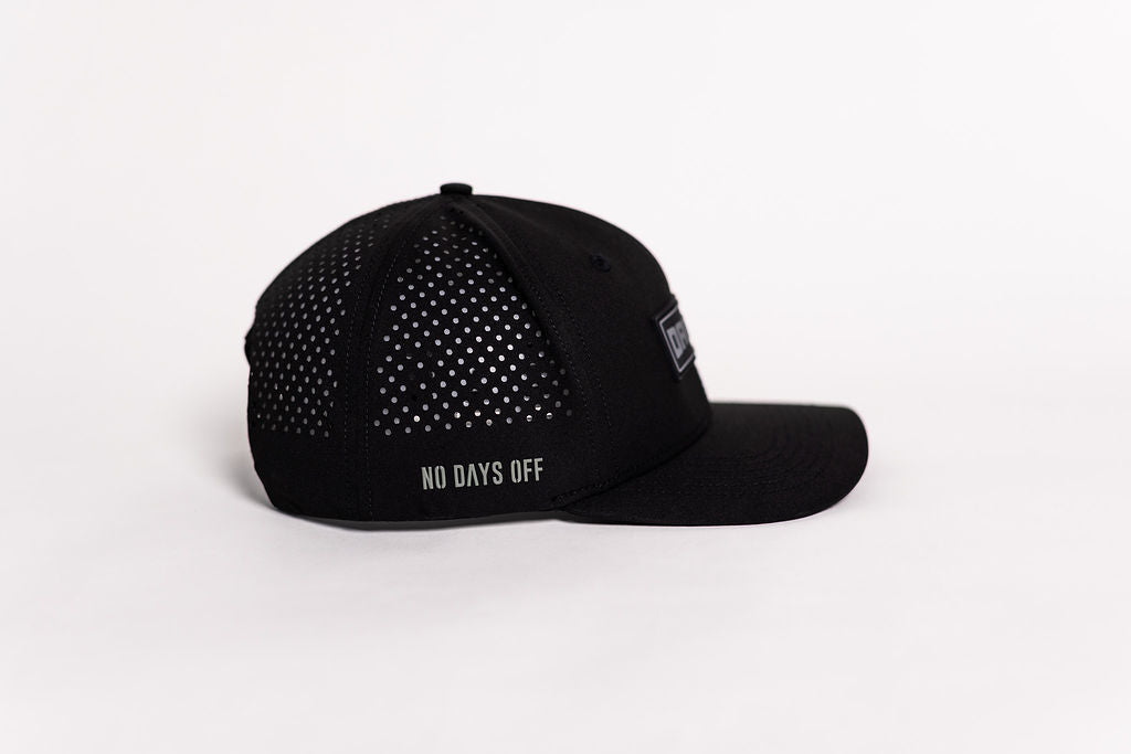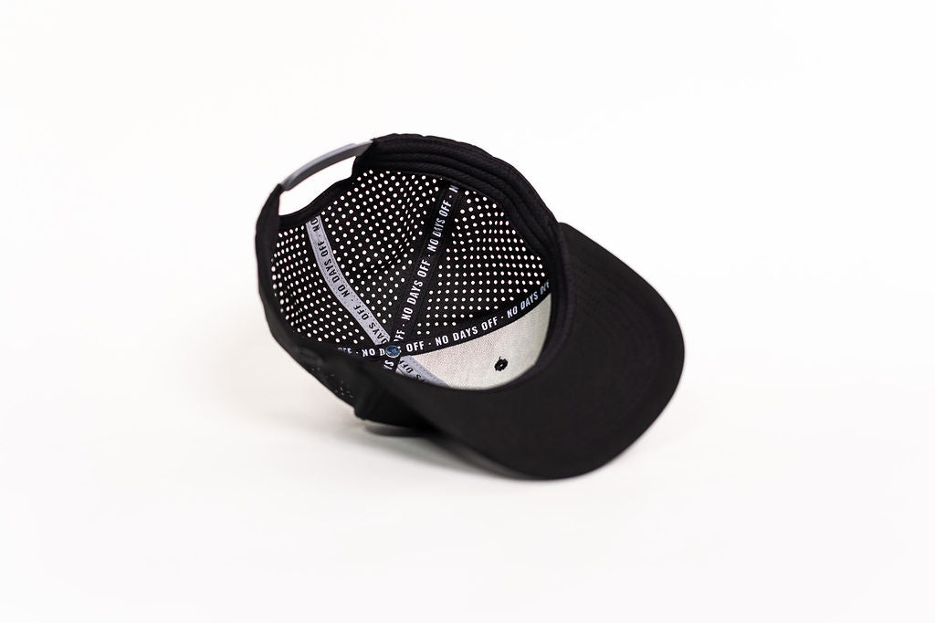 Designed with a structured 6-panel silhouette, this hat features our new rectangle DAD SZN logo for a sharp, strong design and rope along the front that matches the logo. The No Days Off application is placed on the right temple, while the Dad SZN circle logo is positioned on the left temple.