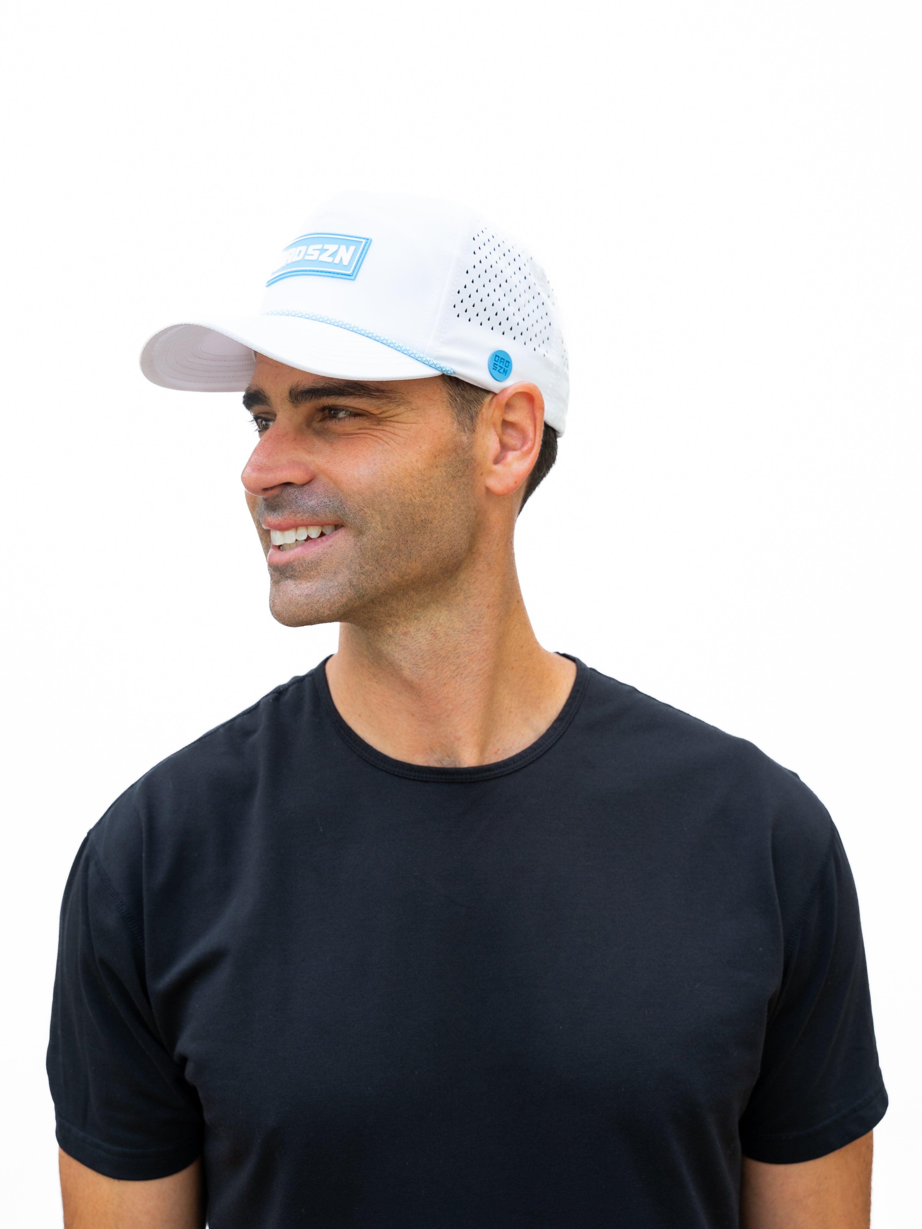 Laser-cut perforations enhance airflow, helping regulate temperature during workouts, rounds of golf, or busy dad days on the go. A premium rope accent across the bill adds a classic sport touch, while the raised DAD SZN patch keeps the look bold but minimal.