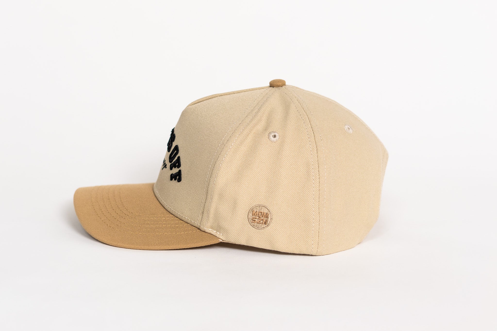 • Two-tone colorway: Light cream crown / Dark taupe bill